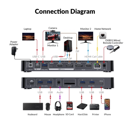 iDock C20 KVM Switch Docking Station USB-C w/ USB 3.0, 4K Dual Monitor