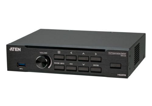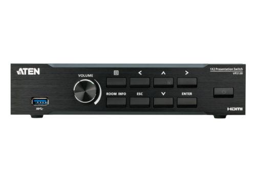 The Aten VP2120 1x2 is a seamless Presentation Switch that integrates video matrix switch, AV streaming, audio mixing, and collaborative functions into one compact device. With one HDMI input, dual HDMI outputs, plus four bi-directional streaming channels, VP2120 empowers BYOD collaboration for more efficient and productive meetings in huddle spaces and huddle rooms, as well as small- to medium-size meeting rooms. The VP2120 allows participants to join meetings wirelessly from laptops and smartphones, making collaboration faster and easier than ever before. Just simply log-in and start sharing your presentation content from the Web GUI or from the ATEN Video Presentation Control App on any Apple or Android mobile device. Data Sheet Manual