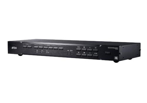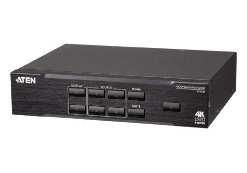 The ATEN VP2120 Seamless Presentation Switch integrates video matrix switch, AV streaming, audio mixing, and collaborative functions into one compact device.
